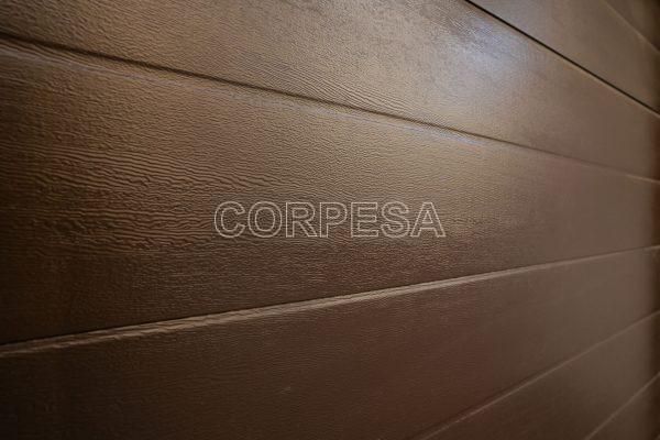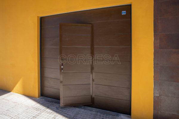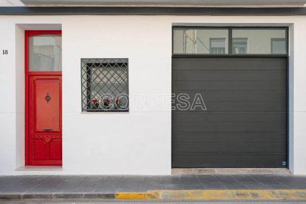 - HOJA. Integrada por varios paneles sándwich de 40 mm de espesor, compuesto por chapas de acero y núcleo de poliuretano de alta densidad. Los diferentes paneles están articulados entre sí por medio de bisagras de acero de alta resistencia y sistema paneles anti-pinzamientos de dedos.